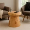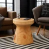 Designed with Scandinavian simplicity, this wooden side table brings natural charm and functionality to your living space. Its rounded top and smooth silhouette make it suitable for use as an end table, bedside accent, or decorative stand. The table is crafted from solid wood with visible grain patterns that highlight its organic appeal. The pedestal base provides stability while maintaining a clean, minimalist form that complements both contemporary and classic interiors.